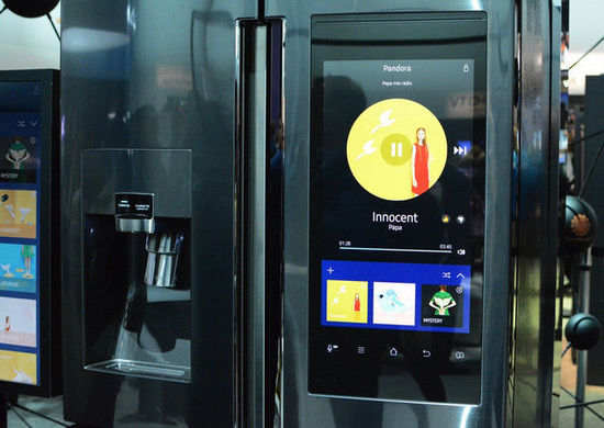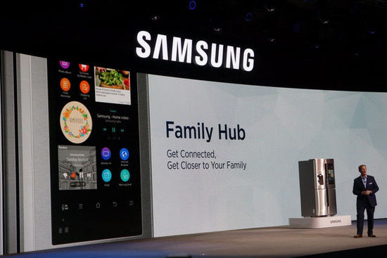 比如:三星FamilyHub智能冰箱,在基础功能相当成熟和完善的情况下,外门搭载了一块大尺寸触摸屏,可以与手机进行实时无缝互联,也可以通过它收发信息,浏览图片,留言,查看冰箱内部存储的食材等等,还可以观看在线视频,大大增强了人机互动,让冰箱有了不一样的使用体验,也为厨房生活带来欢乐。